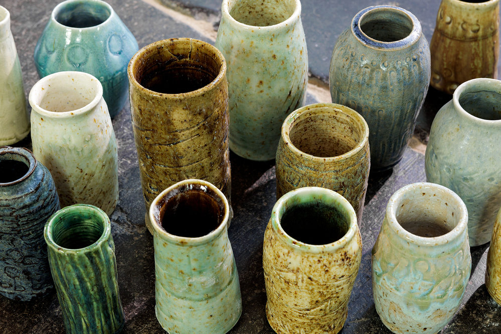 Over the past months, artist Navid Nuur crafted one hundred vases in the Oude Kerk. He then took them into the city, rolling them against facades, doors, bridges, and street furniture, imprinting the vases with literal impressions of the city. The glaze for the vases was collected from across Amsterdam, which is celebrating its 750th anniversary in 2025. A selection of the materials he used includes shells from the IJ, glass from cafés, charcoal from a kebab shop, ash from a pizzeria, and silt from the canals. In this way, he imbued this universal and age-old object with the soul of Amsterdam.