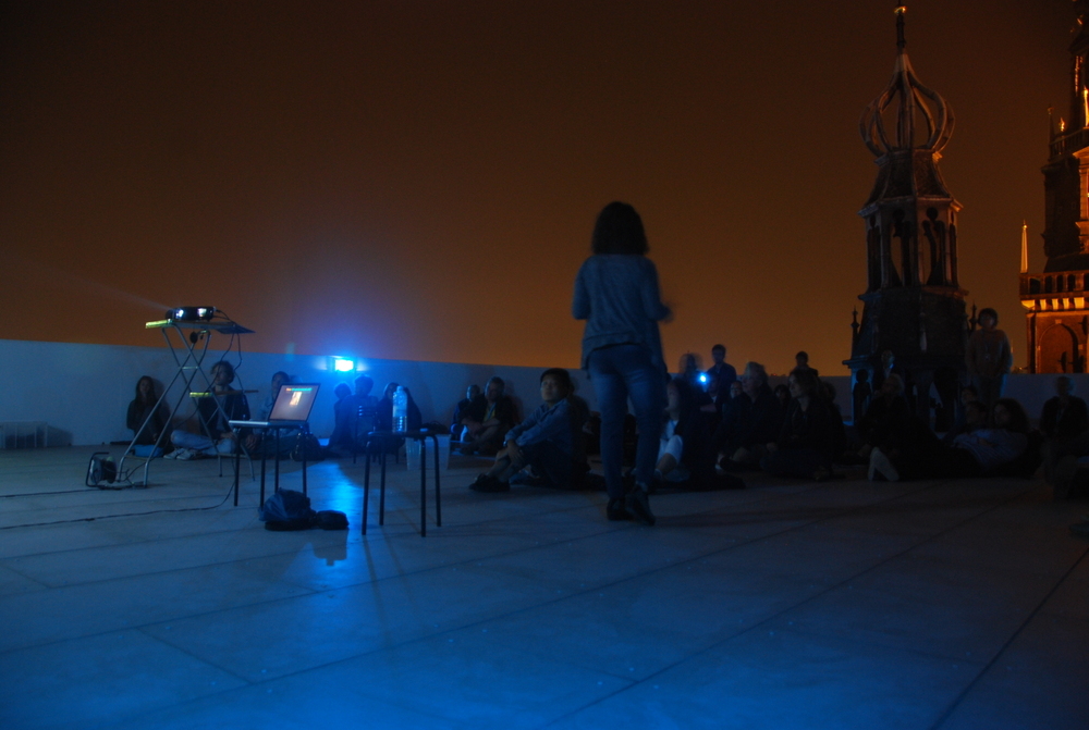 We maakten deze avond gebruik van de bovenaardse locatie gecreëerd door Taturo Atzu om de hemel te kunnen zien vanaf een uitkijkpunt dat teruggaat tot de zeventiende eeuw, waarbij we dieper ingingen op de betekenis van een oneindig heelal en de relatie tussen tijd en ruimte. Astrofysica Sera Markoff (verbonden aan Anton Pannekoek Instituut voor Astronomie, UvA) gaf een wetenschappelijke lezing, zij is gespecialiseerd in zwarte gaten. Vooraf werd de korte film ‘Powers of Ten’ door Charles en Ray Eames vertoond (9 min, 1977) waarin wordt in- en uitgezoomd; naar het universum en weer terug naar de kleinste menselijke cellen. Bij bewolking of lichte regen gaan de lezing en de Q&A wel door, bereid je in dat geval voor met een regenjas of paraplu.