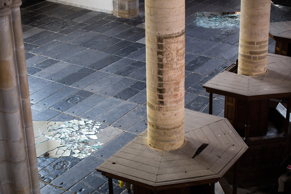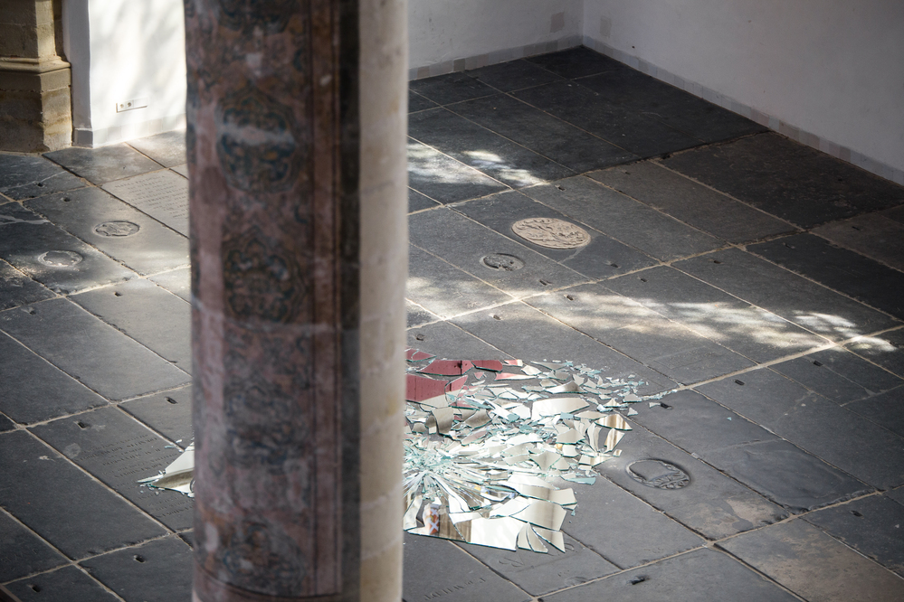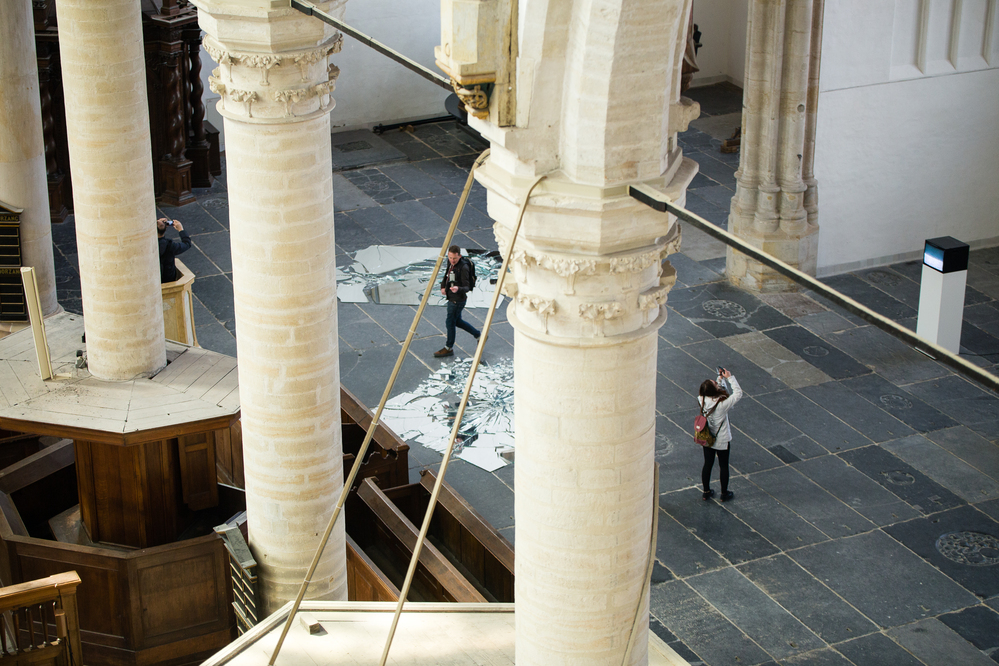 Broken mirrors were placed in several places in the Oude Kerk, like shooting stars from a forgotten universe, trimmed with museum cord by way of fallen heritage.