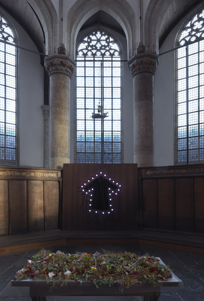 Based on earlier work from from 2000, re-installed in the Oude Kerk.