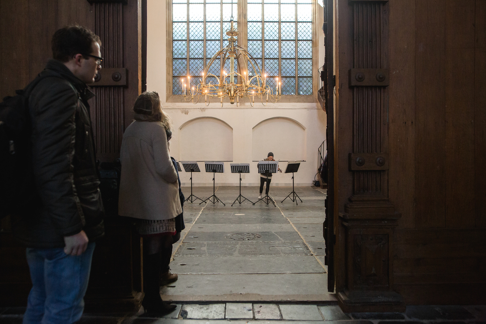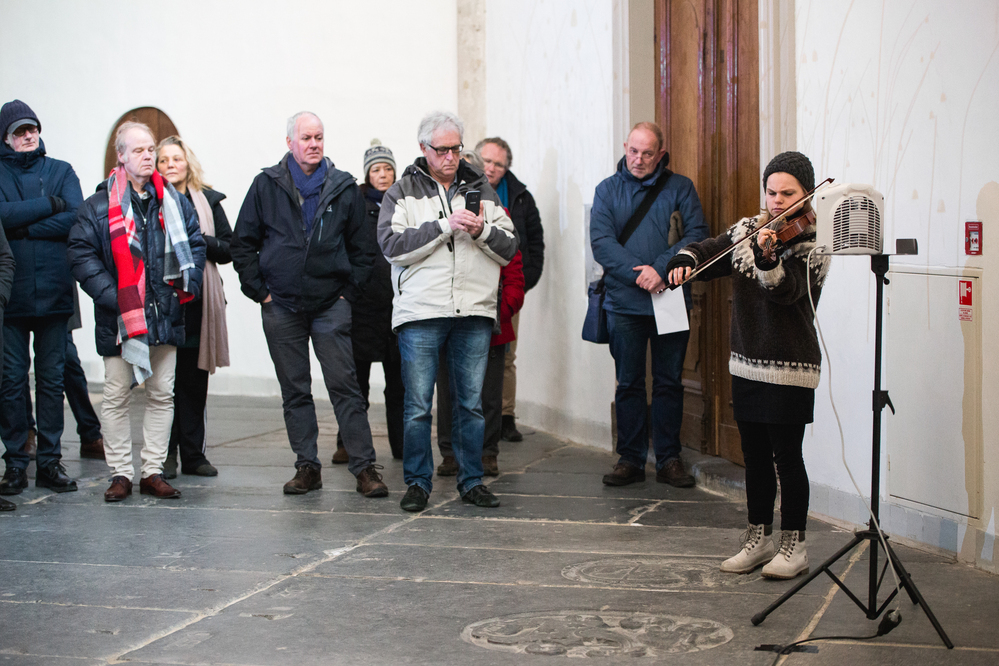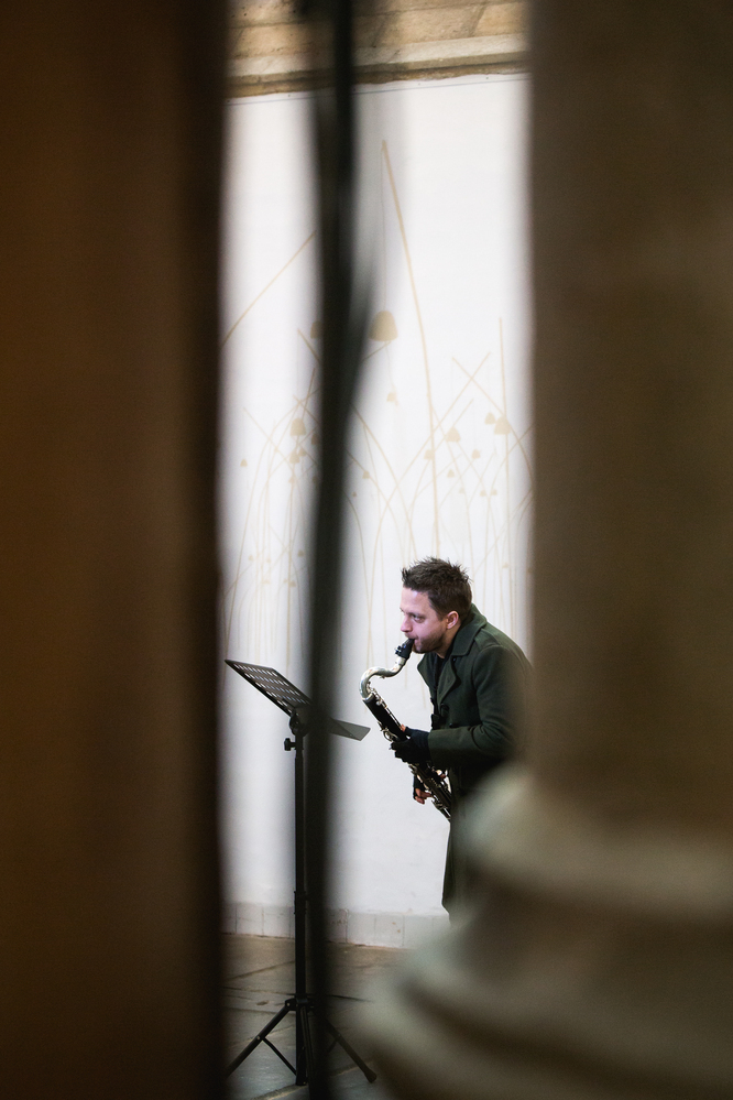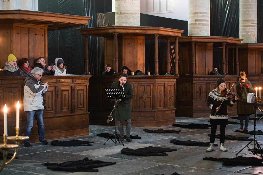 On March 2, a concert was held with compositions by the Italian avant-gardists Luciano Berio and Salvatore Sciarrino , performed by Diamanda Dramm (violin) and Gareth Davis (bass clarinet). The composition 'Let me die before I wake' by Salvatore Sciarrino, who made an arrangement for bass clarinet especially for Gareth Davis, was central. The piece was performed and sounds alternated with a Sequence by Berio for violin. The concert concluded with parts of the mystery cycle, of the rosary cycle by the Austrian baroque composer Heinrich Biber . Catholic church music has now become a set of universal mantras, such as the Passacaglia (the guardian angel).