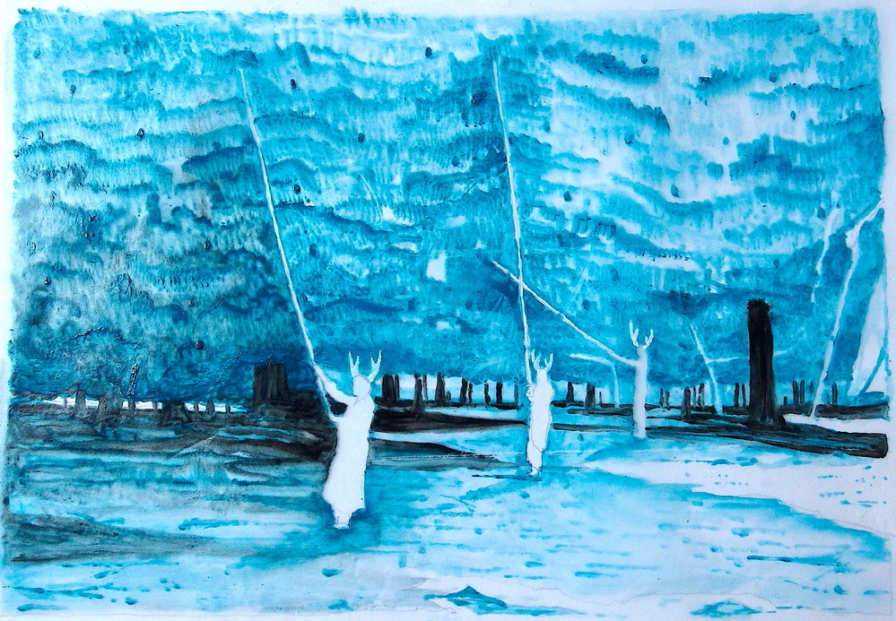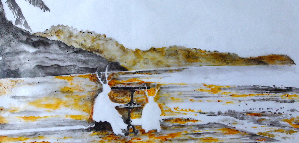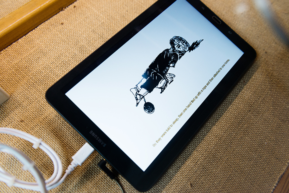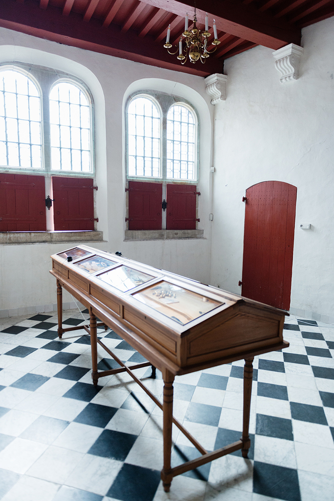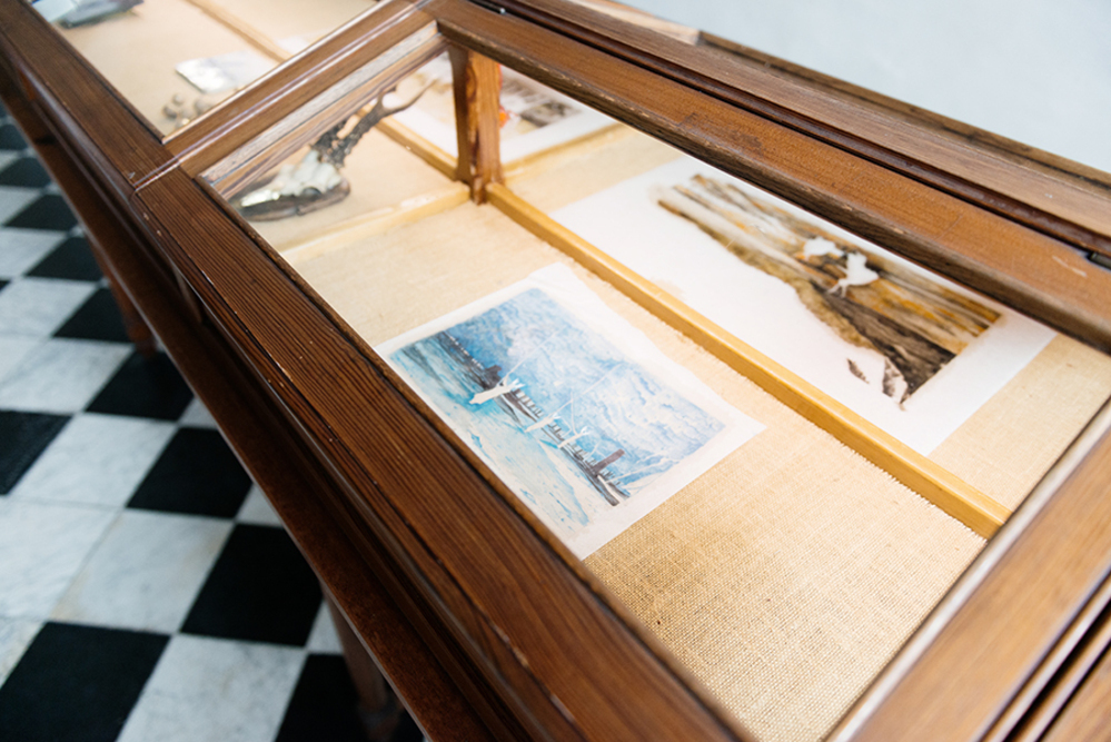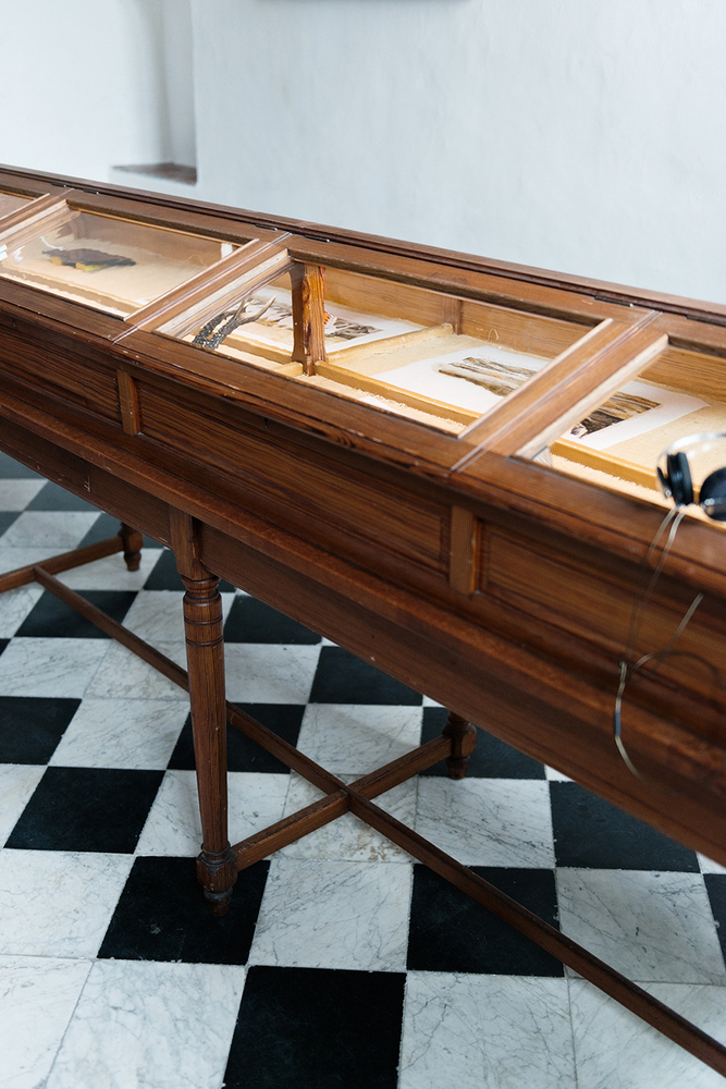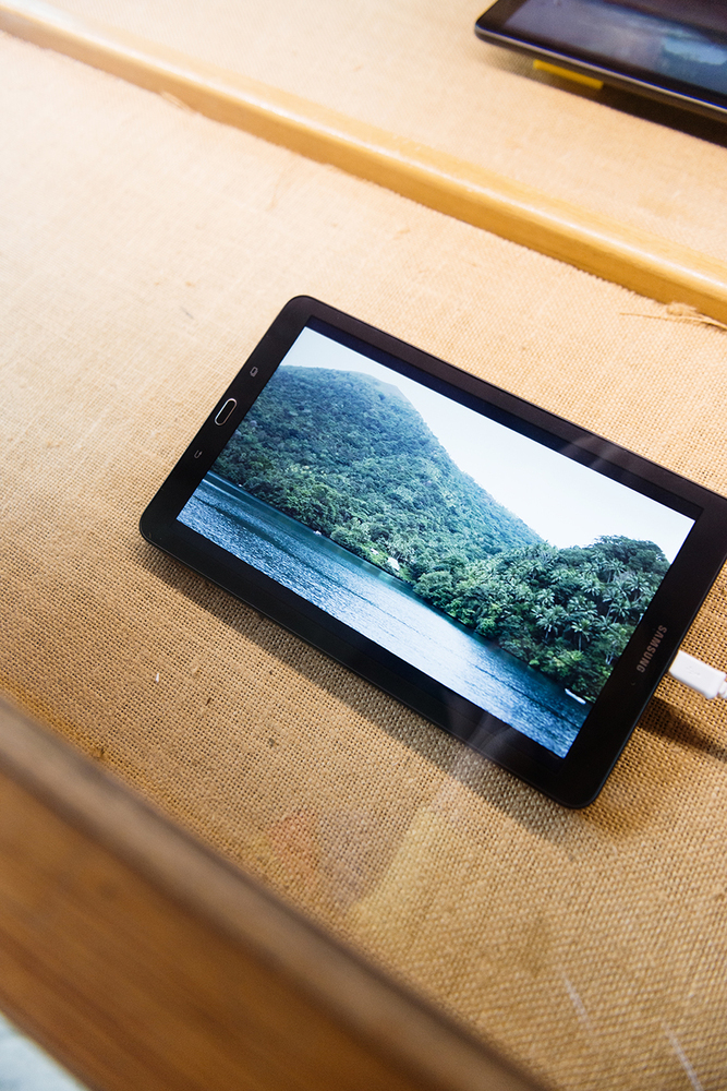 In 'Arrival and Departure' the Indonesian artist Iswanto Hartono imagines what Banda looked like when Jan Pieterszoon Coen approached the island with his ship in the 17th century. Slowly, on a number of screens presented in a showcase, images of modern-day Banda pass by. The work is part of a site-specific installation that Hartono developed for Oude Kerk as part of Europalia Indonesia. In several works, he explored the relationship between Indonesian history and the imagery of Dutch colonialism.