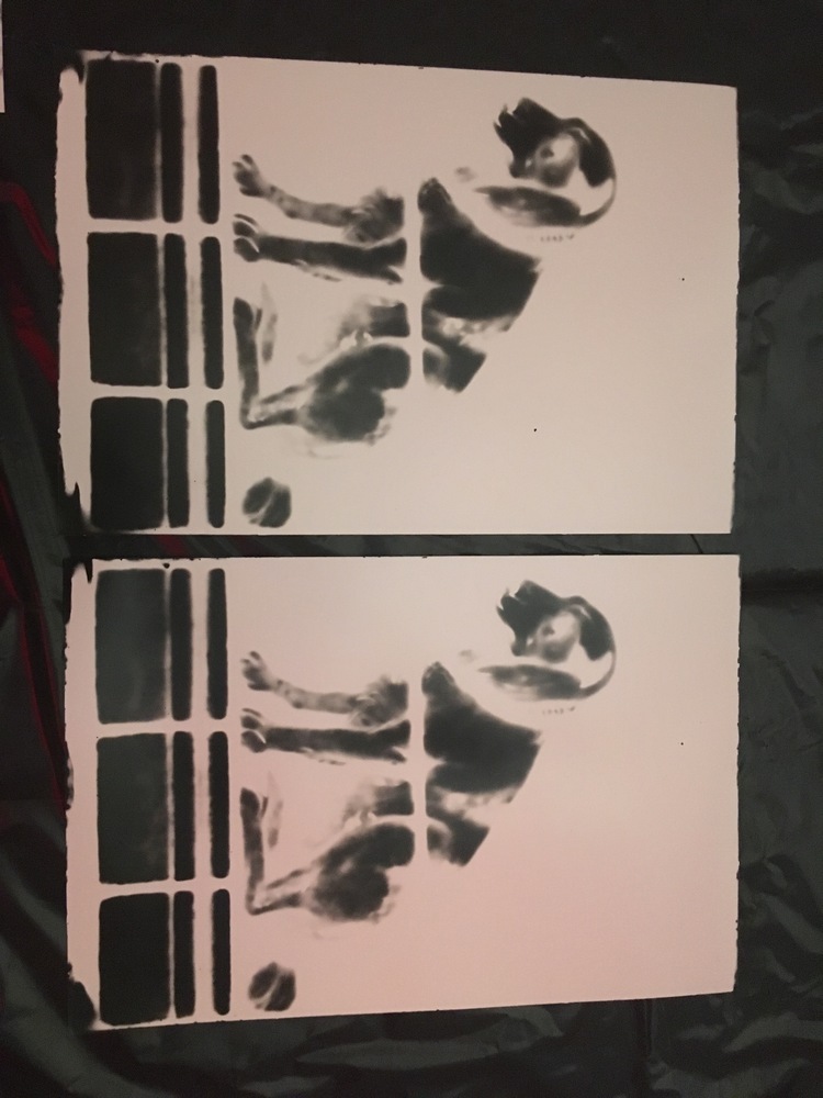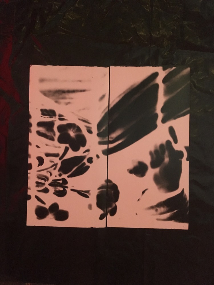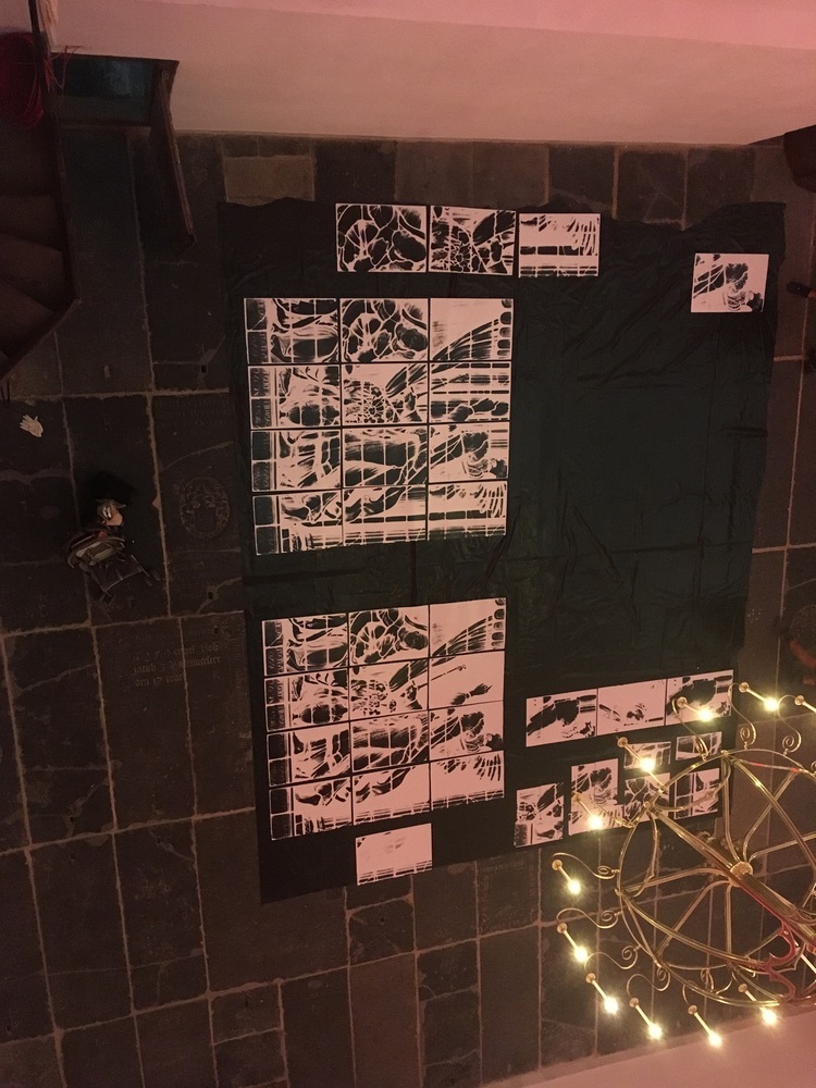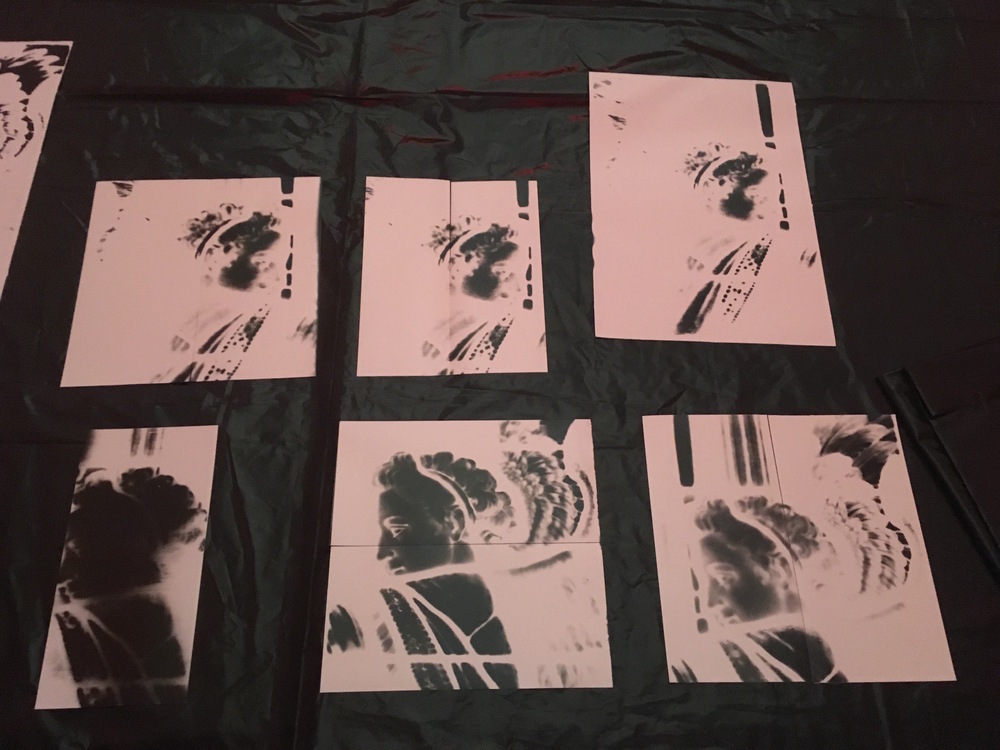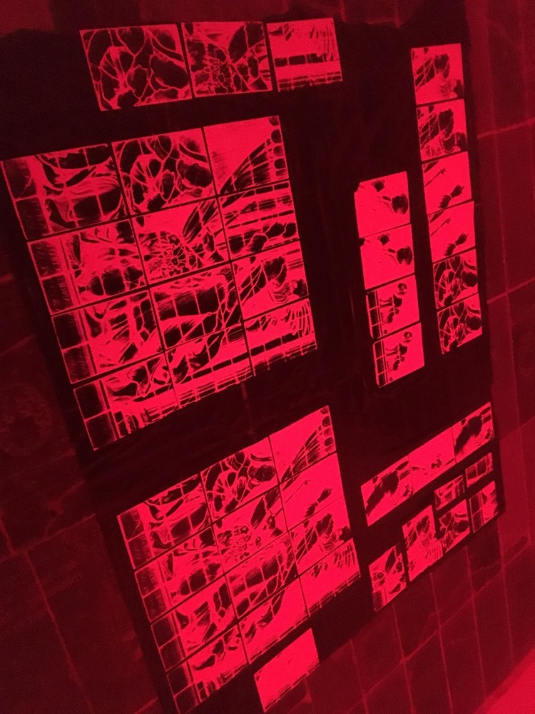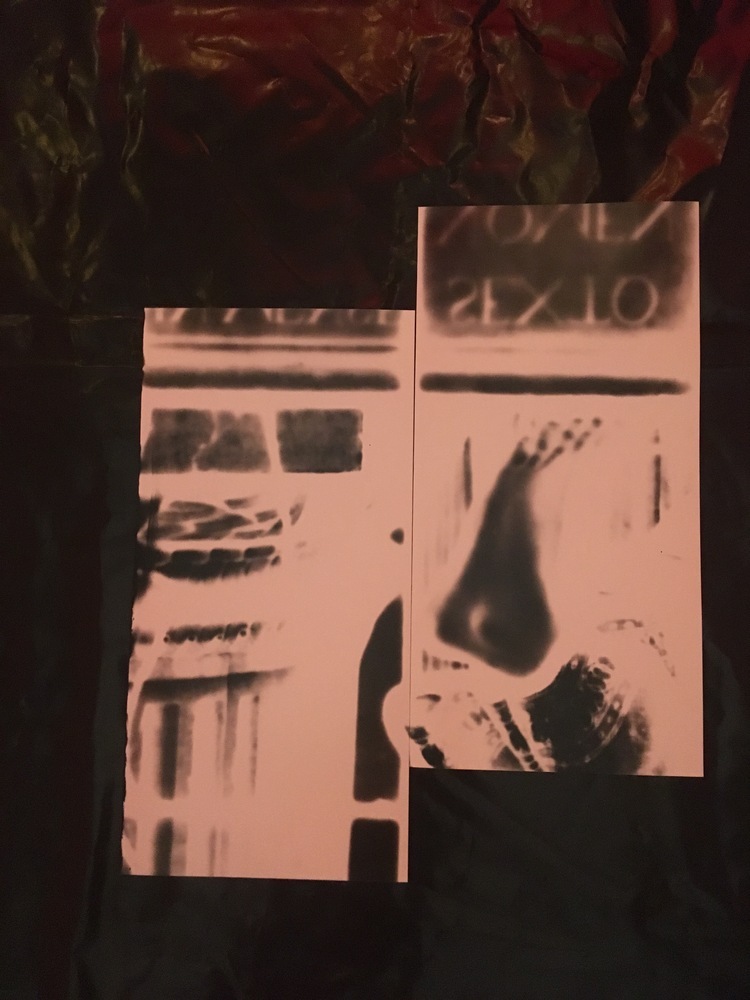 The piece consisted of 14 photographic prints in natural light, generated by the impact of silver salts in combination with the light of the sun. The prints were made over the summer of 2018, by placing photosensitive paper in contact with the stained glass window in the Oude Kerk.