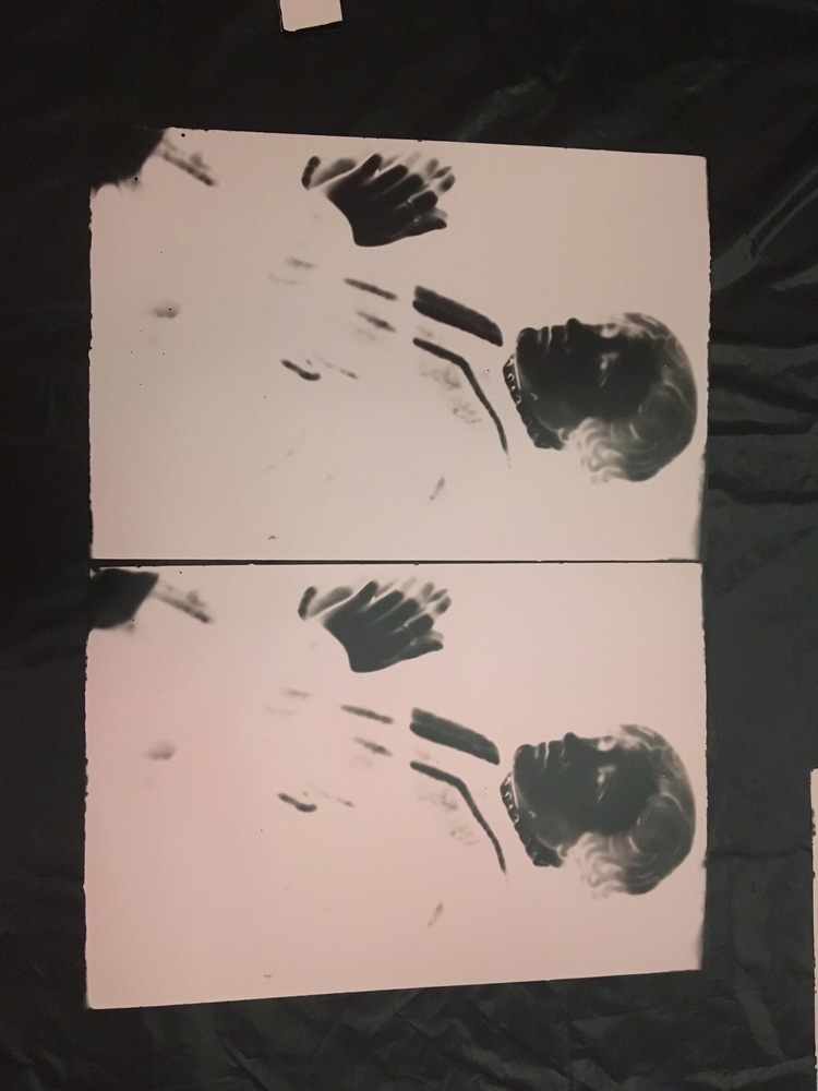 During the development of analogue film inside a darkroom, photographic contact prints are usually made by regulating light via an enlarger. A length of exposure is defined that allows a positive to be obtained from a correct reading of the shot. In Annunciation, the same procedure was put into action using the light that is naturally filtered through the church window. The regulation became natural: it was achieved by intercepting the atmospheric and solar variations over the course of the day and throughout the summer season. The light, passing through the window and being charged with the image represented, generated a reflected copy of the scene of the Annunciation.