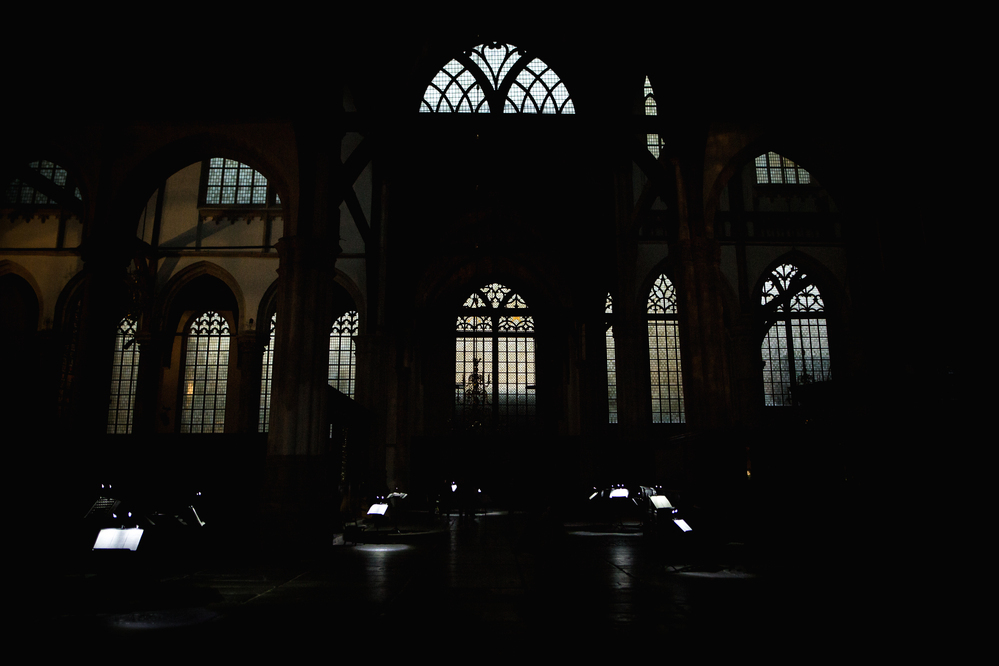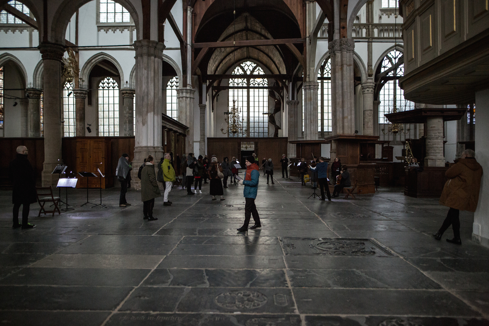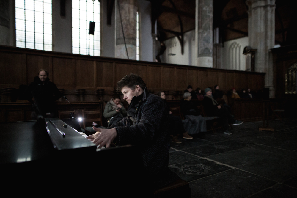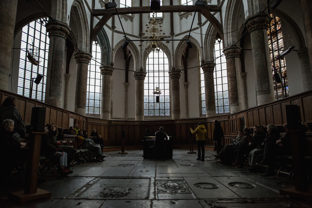 The Silence concert on February 1, 2019 took place throughout the church, the world of the mellotron is spatially "enlarged". Confrontations, fragments, contrasts, voices, strings and sounds. Listeners could create their own composition by moving through the church, or by choosing a fixed place. Five musicians played with the material of the mellotron, four adapted psalms by Jan Pieterszoon Sweelinck. In addition, 'Es sang vor langen Jahren' by Arvo Pärt, for voice and two string instruments, was be performed. The musicians of Silence # 18 were Kaspar Kröner (countertenor), Margarida Sampoia (flute), Oene van Geel (viola), Gareth Davis (bass clarinet), Pau Solas Masafrets (cello), and Jacob Lekkerkerker (mellotron).