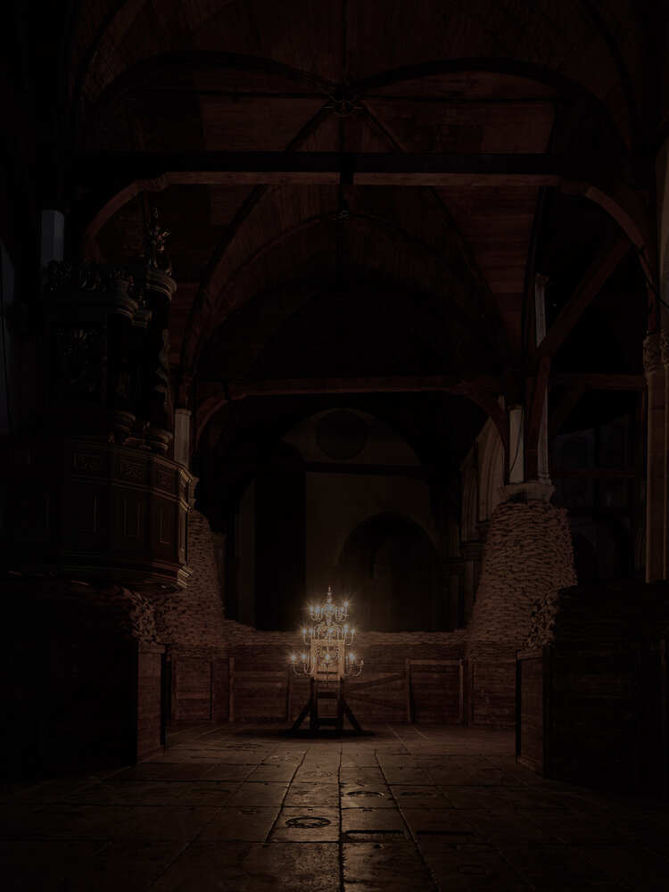 Adrián Villar Rojas: “The Oude Kerk is another exploration stage, where I analyze human obsession with heritage, conservation and material accumulation (gold, art, buildings, needles, whatever, but especially if it is worthy, valuable or tradable) from the intangibility and infinite abundance of sound. At the same time, I propose an introspective journey through our own personal story via this metaphorical history of sound. I always try to trigger reflection, emotion, focusing on the world from negativity, absence and loss, no matter what kind of matter (tangible or not) I’m dealing with.”