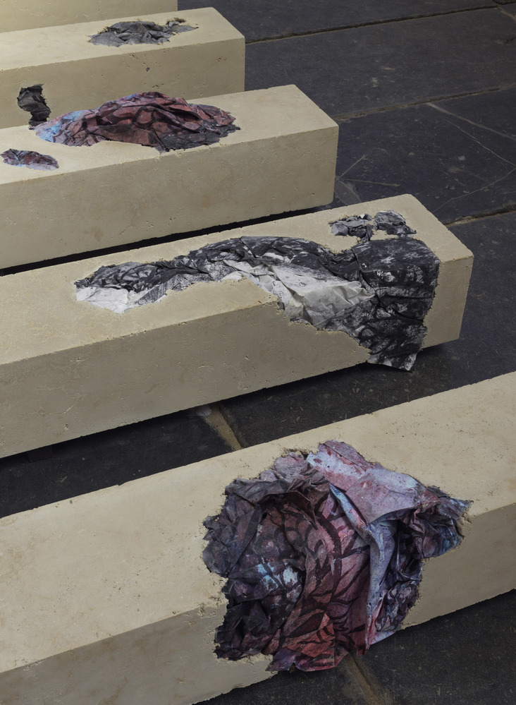 De Argentijnse kunstenaar Aimee Zito Lema maakte 12 sculpturen gemaakt van cement vermengd met fotografische afdrukken op papier. Ze lagen achter het Hoogkoor in de omgang. In de Rooms Katholieke tijd, voor de Reformatie van 1578, hingen beelden van de 12 apostelen aan de pilaren in het Hoogkoor. Deze beelden werden verwijderd en/of vernietigd, waarbij alleen de lege plekken op de pilasters achterbleven. Het zijn deze sporen van afwezigheid die de inspiratie vormden voor het maken van deze reeks abstracte sculpturen. De foto’s zijn infrarood- en röntgendocumentatie van de originele pilaren.