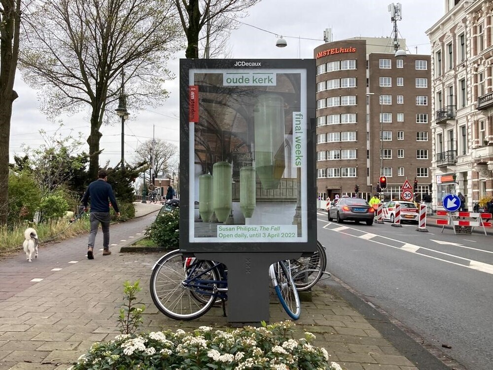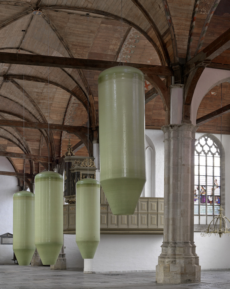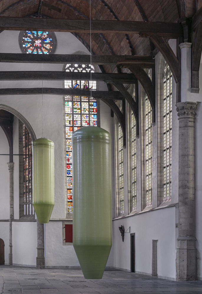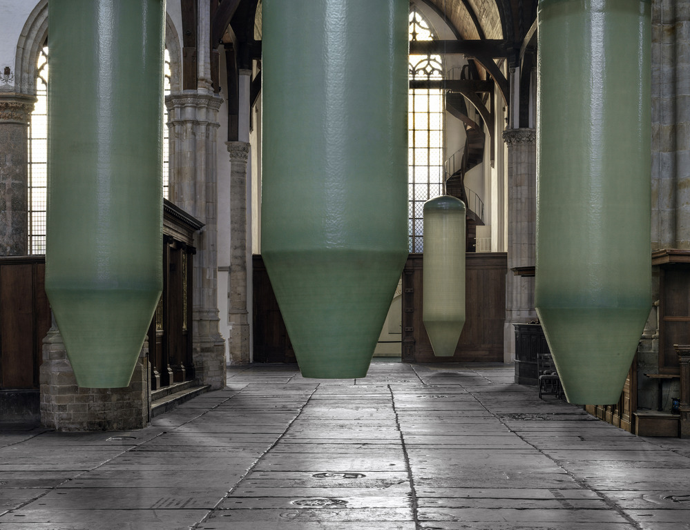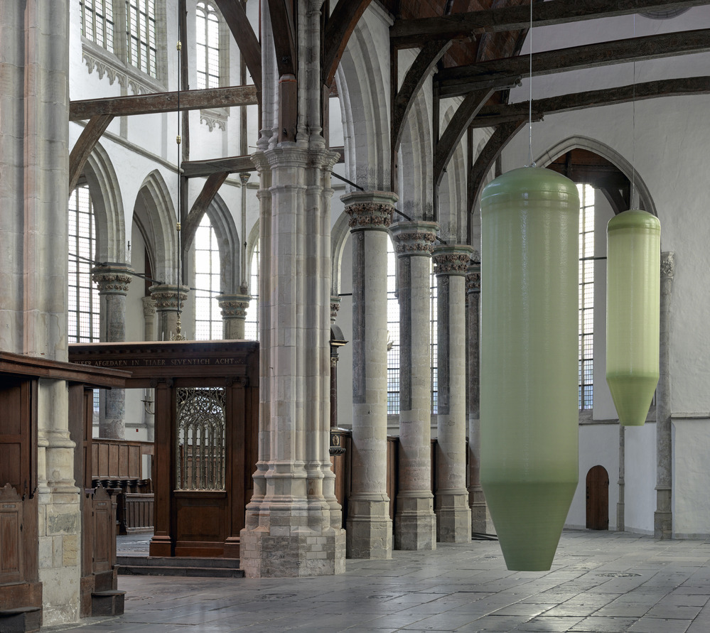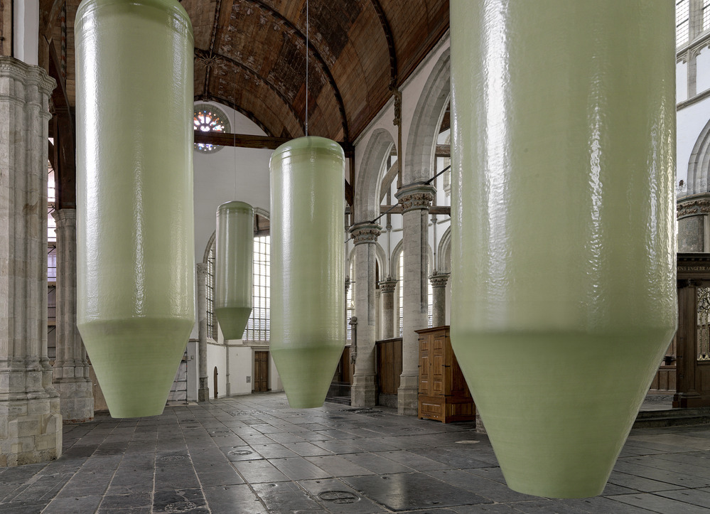 Philipsz unravelled her four-part harpsichord piece 'Mein junges Leben hat ein End'. Separately, she sang the lines of soprano, alto, tenor, and bass. They resounded in the Oude Kerk from eight suspended silos. The closer you approached one of those pale green silos, the more clearly her untrained voice could be heard.