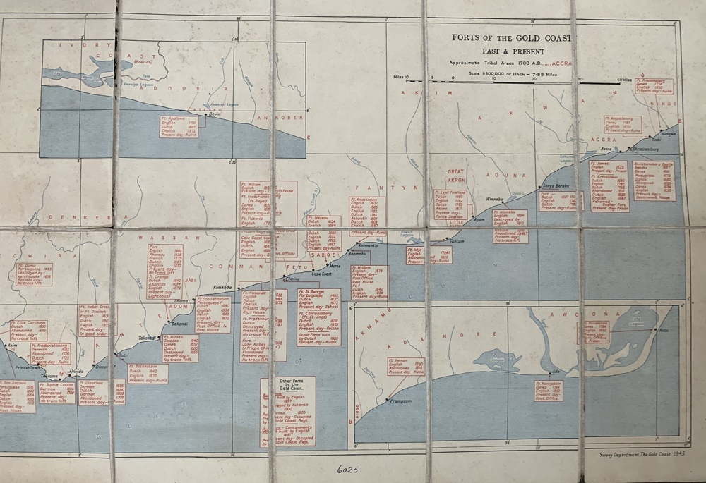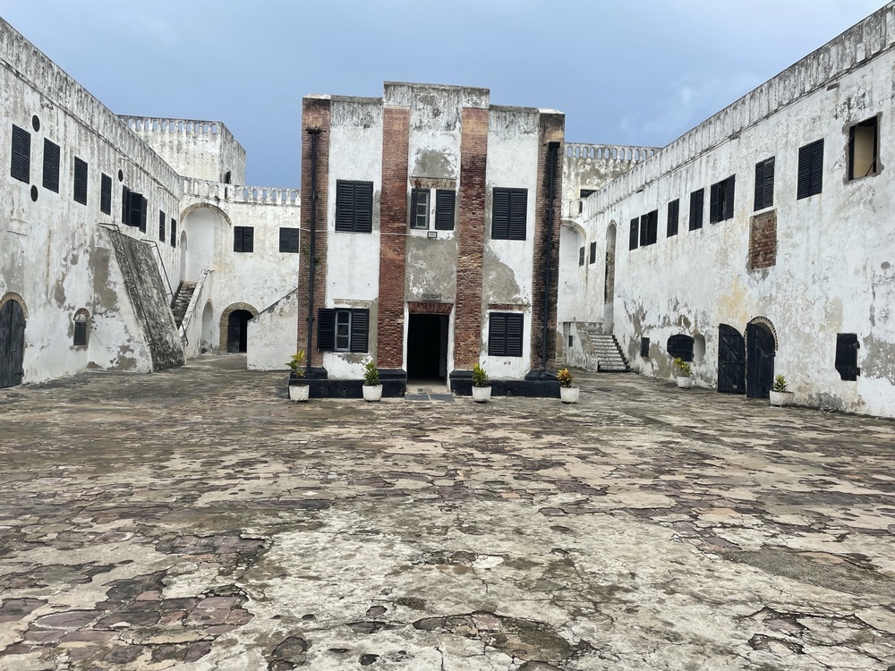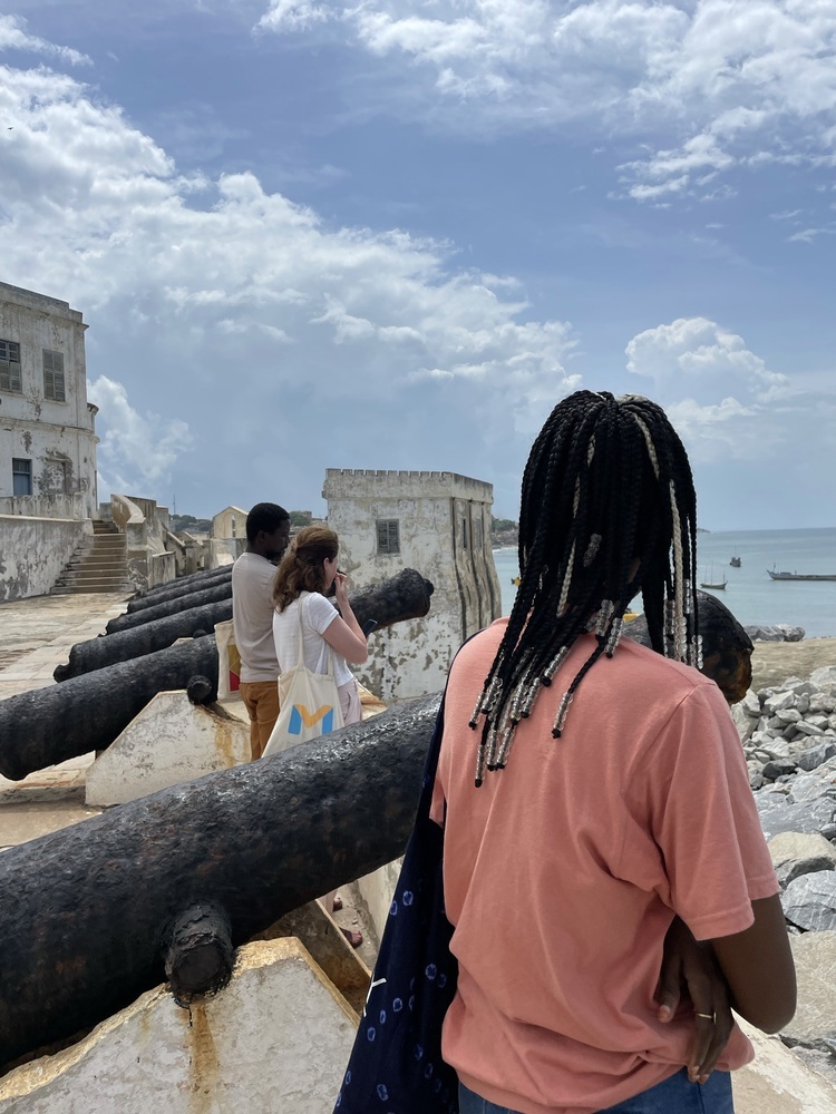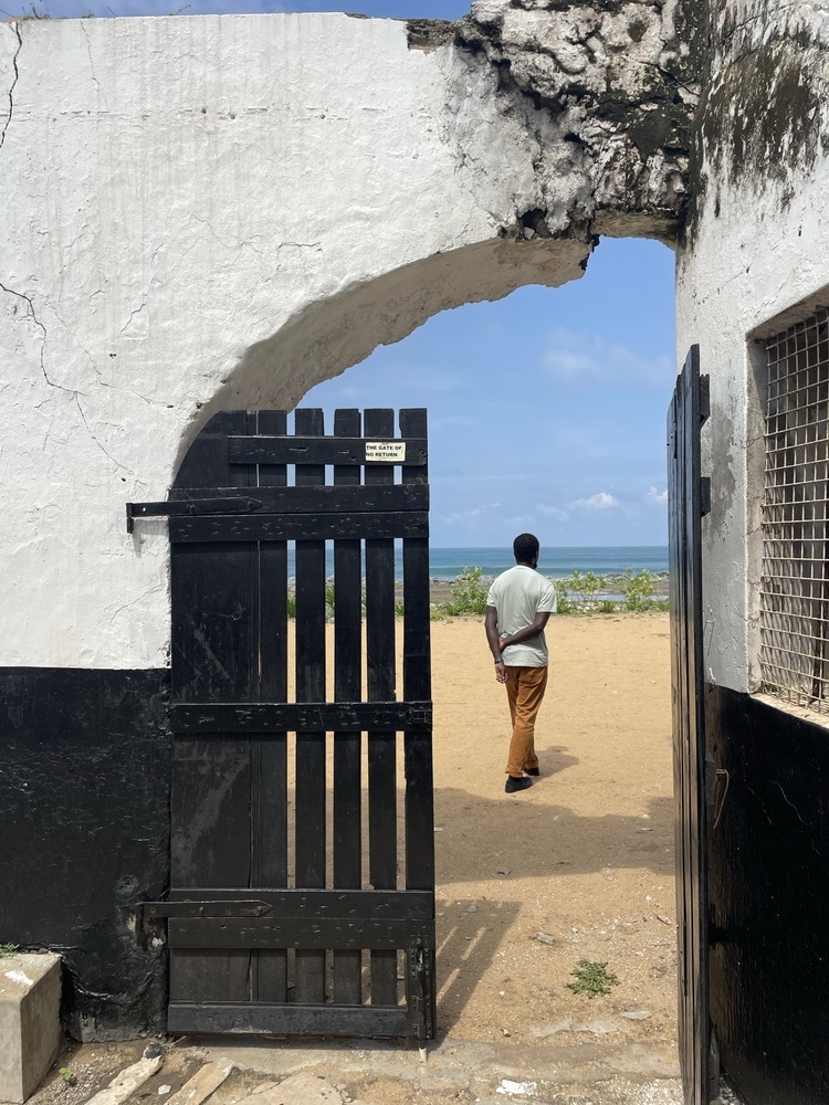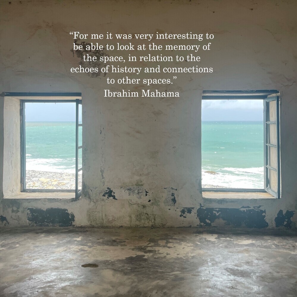 After arriving in the capital of Accra, the team relocated to Tamale where Mahama was born and established his work. Together, they visited his family, the Savannah Centre of Contemporary Art, and his new Red Clay Studio complex. Afterwards, Mahama and the videographers Sg Photography accompanied them on a trip along the Southern coast, taking them to a number of forts and castles. These included the Dutch Cemetery (Elmina), St George's Castle (Elmina), Cape Coast Castle (Cape Coast), Usser Fort (Accra), and Fort Prinzenstein (Keta).
