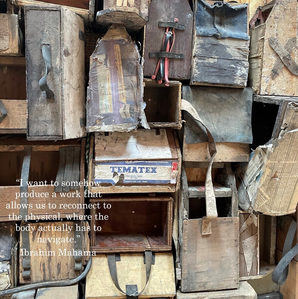 In June 2022, a team from the Oude Kerk, consisting of curator Marianna van der Zwaag and creative producer Chloë Sylvestre, travelled to Ghana to visit artist Ibrahim Mahama as part of a series of mutual site visits.