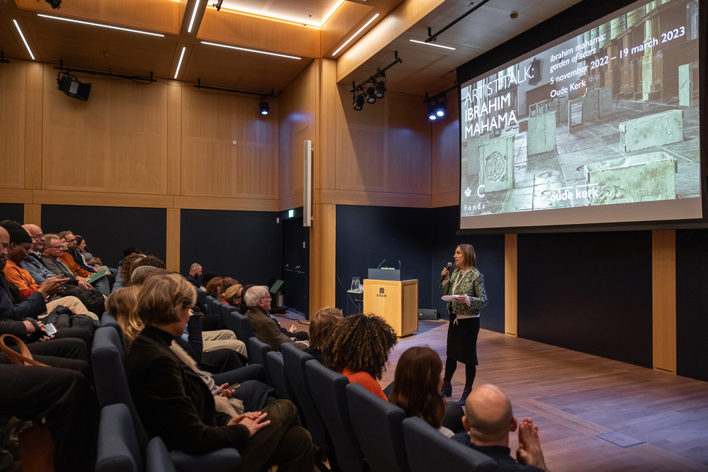 During his talk at the Trippenhuis, Mahama elaborated on the background of his installation Garden of Scars and how the work fits into his broader artistic practice. The talk also discussed his artistic practice and his commitment to the development of culture in Ghana: Mahama founded the Savannah Centre for Contemporary Art (SCCA) in Tamale, which runs workshops for schoolchildren, among other things. In 2020, he opened the sprawling Red Clay Studio complex, with exhibition spaces, research facilities and artist residences. In his work, he reflects on themes of globalisation, labour and the circulation of goods, with works also created thanks to a series of collaborations with Ghanaian citizens.