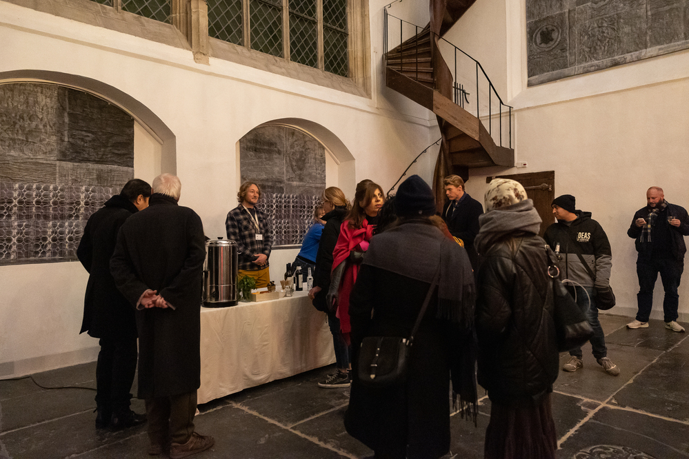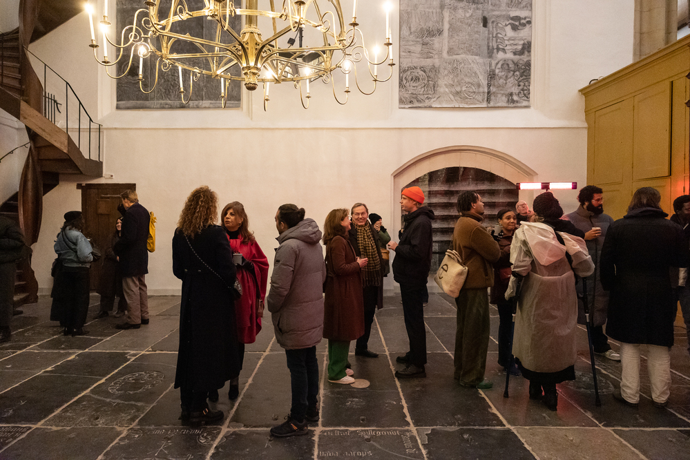 He concluded his talk with a personal ambition and mission to the art world: 'Can we transform art from a state of commodity to a gift?'. After the artist talk, the Oude Kerk was open and visitors could view the art installation.