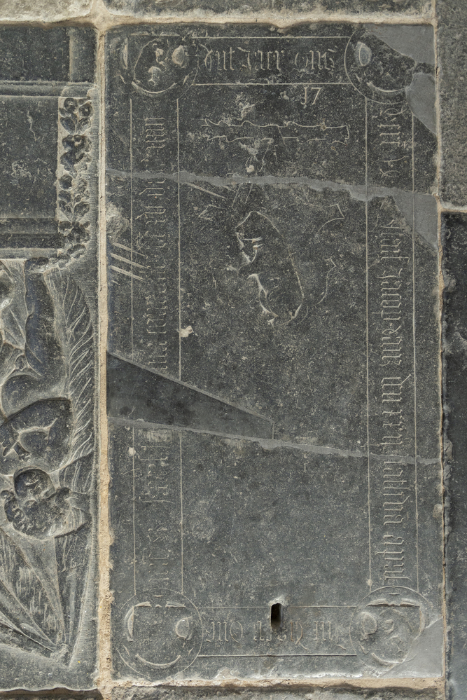 Midden: wapen Beresteyn, hangend aan tak, randschrift met vierpas, in de 4 hoeken schild met beer, staande; randschrift m.b.t. J.J.B.