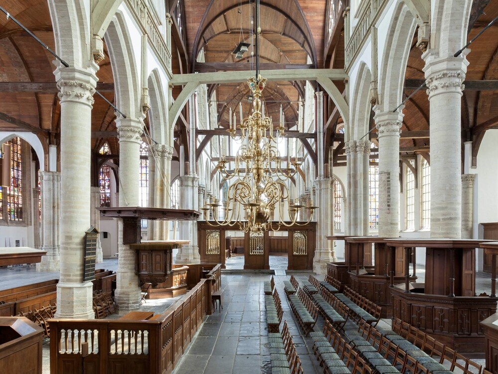 (high choir) formed the liturgical center of the church, the daily life of the people of Amsterdam largely took place in the nave and side aisles. These spaces were places where people gathered or listened to so-called walking concerts between masses. The many paintings, prints and drawings made of the Oude Kerk - by Emanuel de Witte and others - not only show the architecture of the building, but also capture the social character of the church.