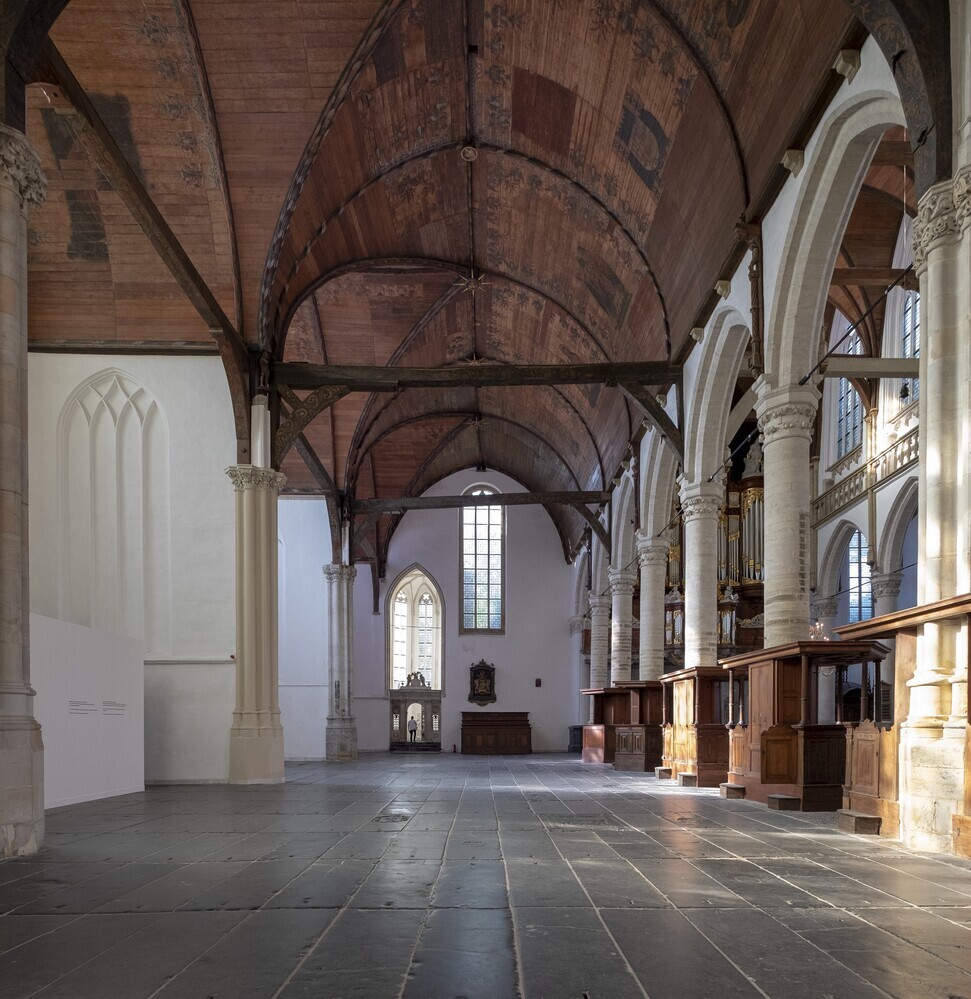 (high choir) formed the liturgical center of the church, the daily life of the people of Amsterdam largely took place in the nave and side aisles. These spaces were places where people gathered or listened to so-called walking concerts between masses. The many paintings, prints and drawings made of the Oude Kerk - by Emanuel de Witte and others - not only show the architecture of the building, but also capture the social character of the church.